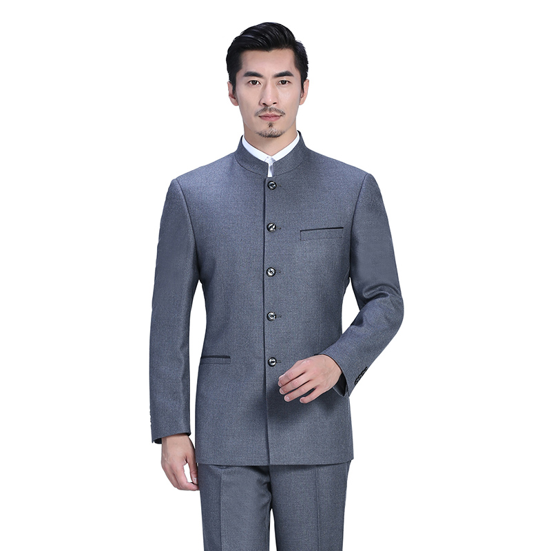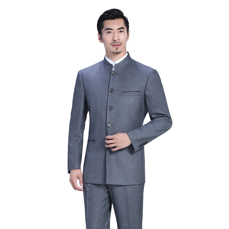 純毛料立領灰色中式男套裝FX10