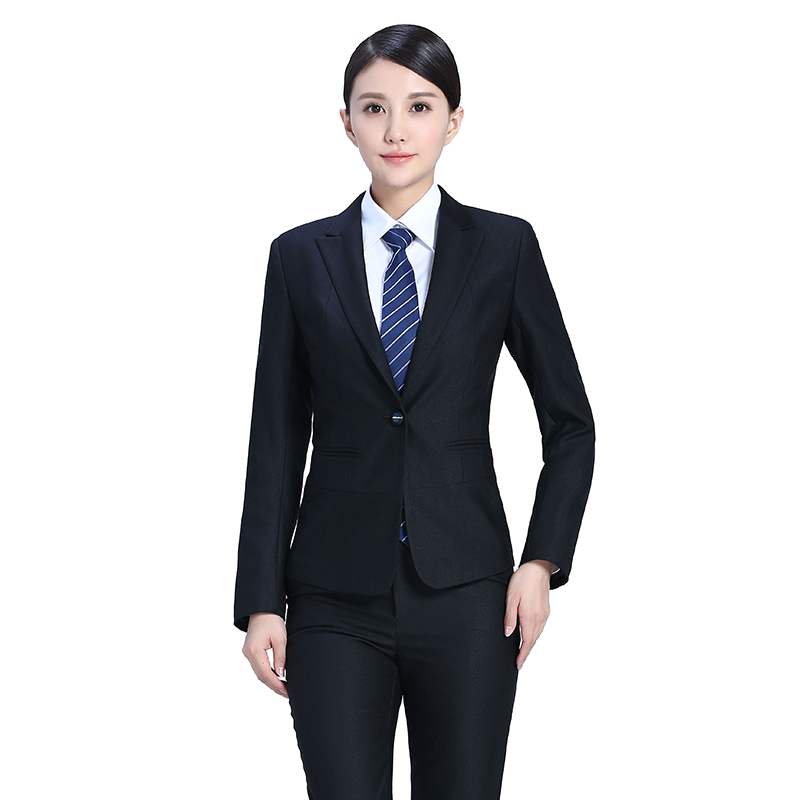 標簽: 戧駁領修身黑色職業套裝FX30