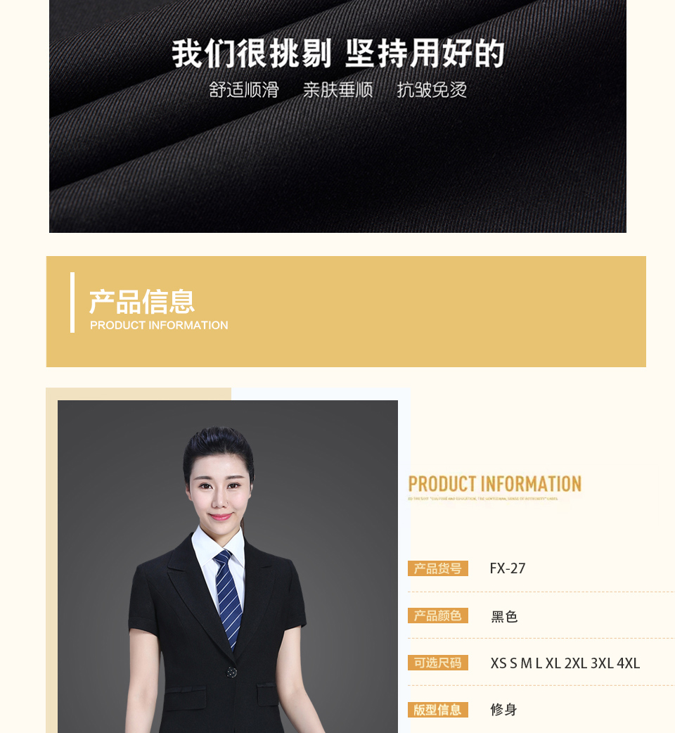 - 標簽:平駁領短袖修身職業套裝FX06