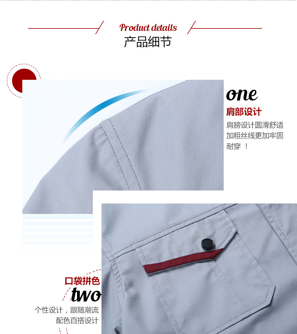夏季細節拼色滌棉細斜短袖工作服FY602