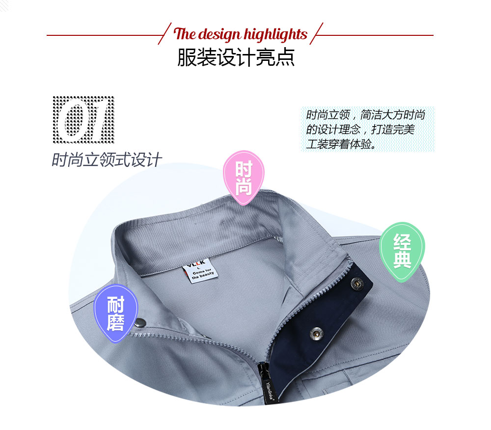 相關灰色高領拼色滌棉細斜短袖工作服FY610推薦