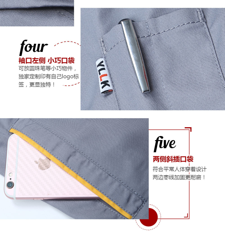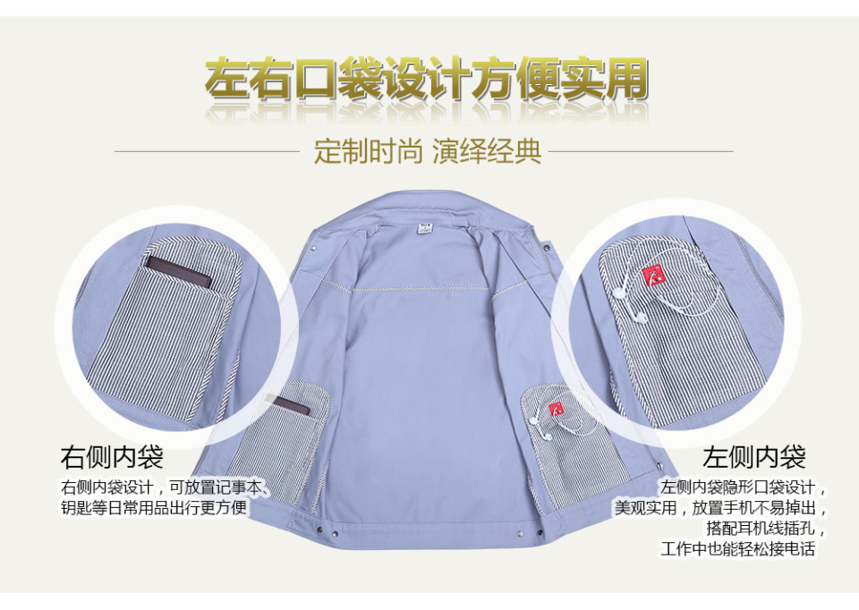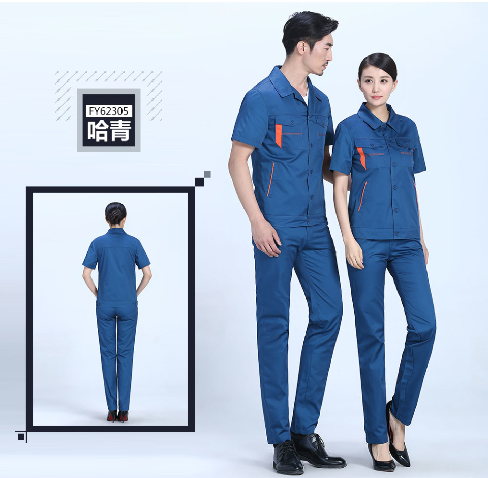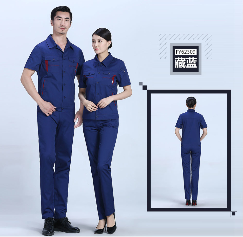 深藍色合體滌棉細斜短袖工作服FY623