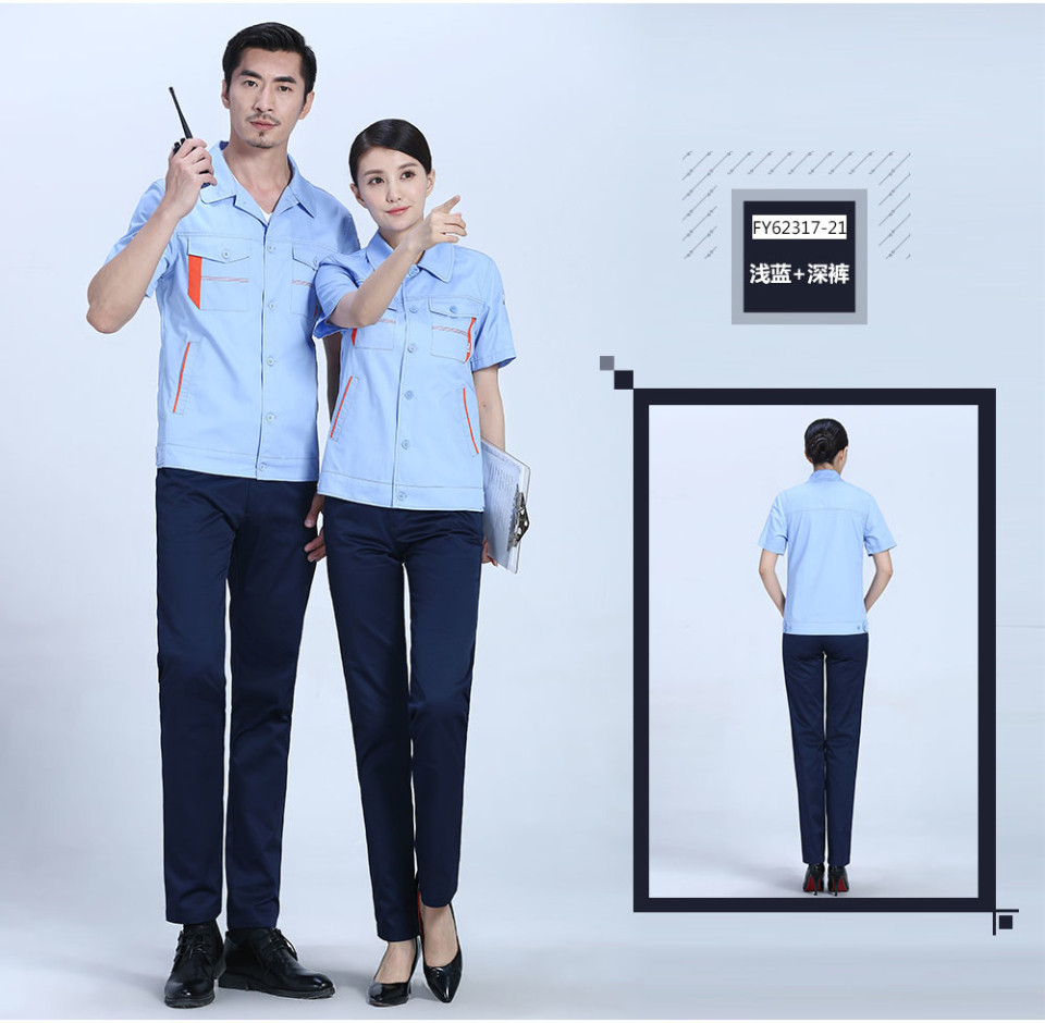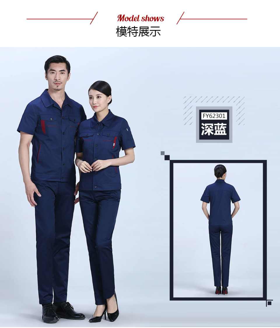 標簽: 深藍色合體滌棉細斜短袖工作服FY623
