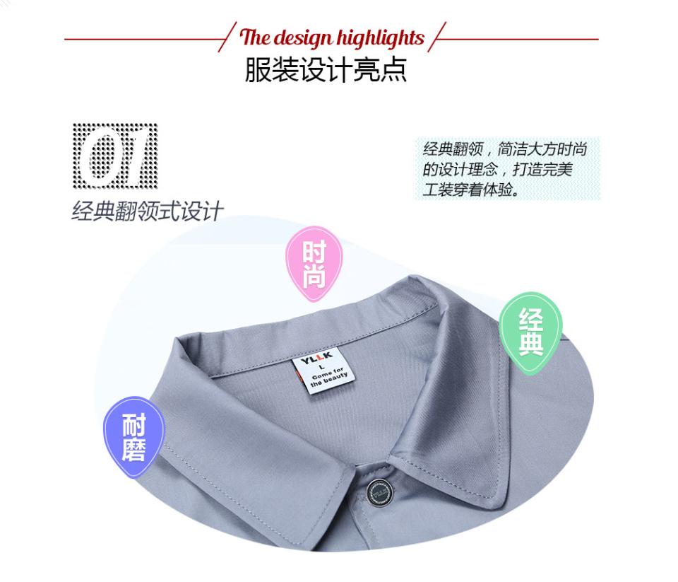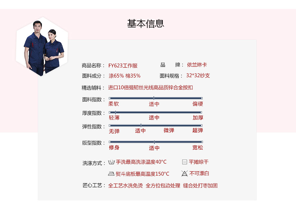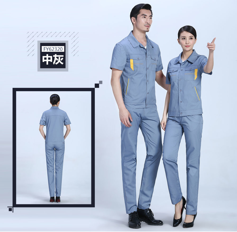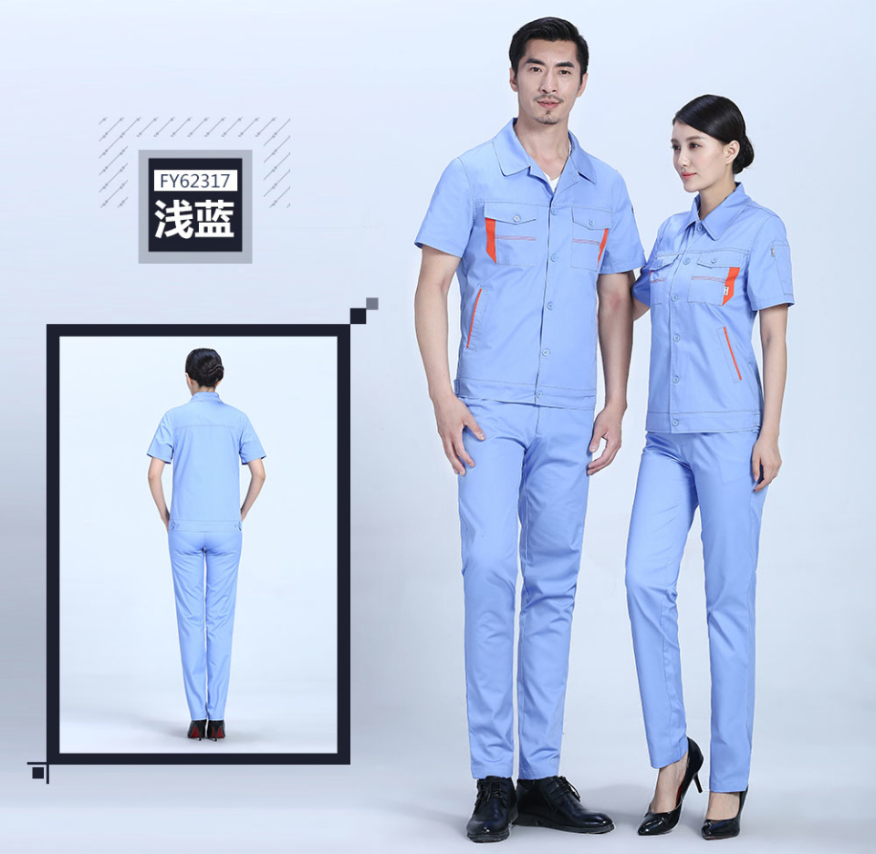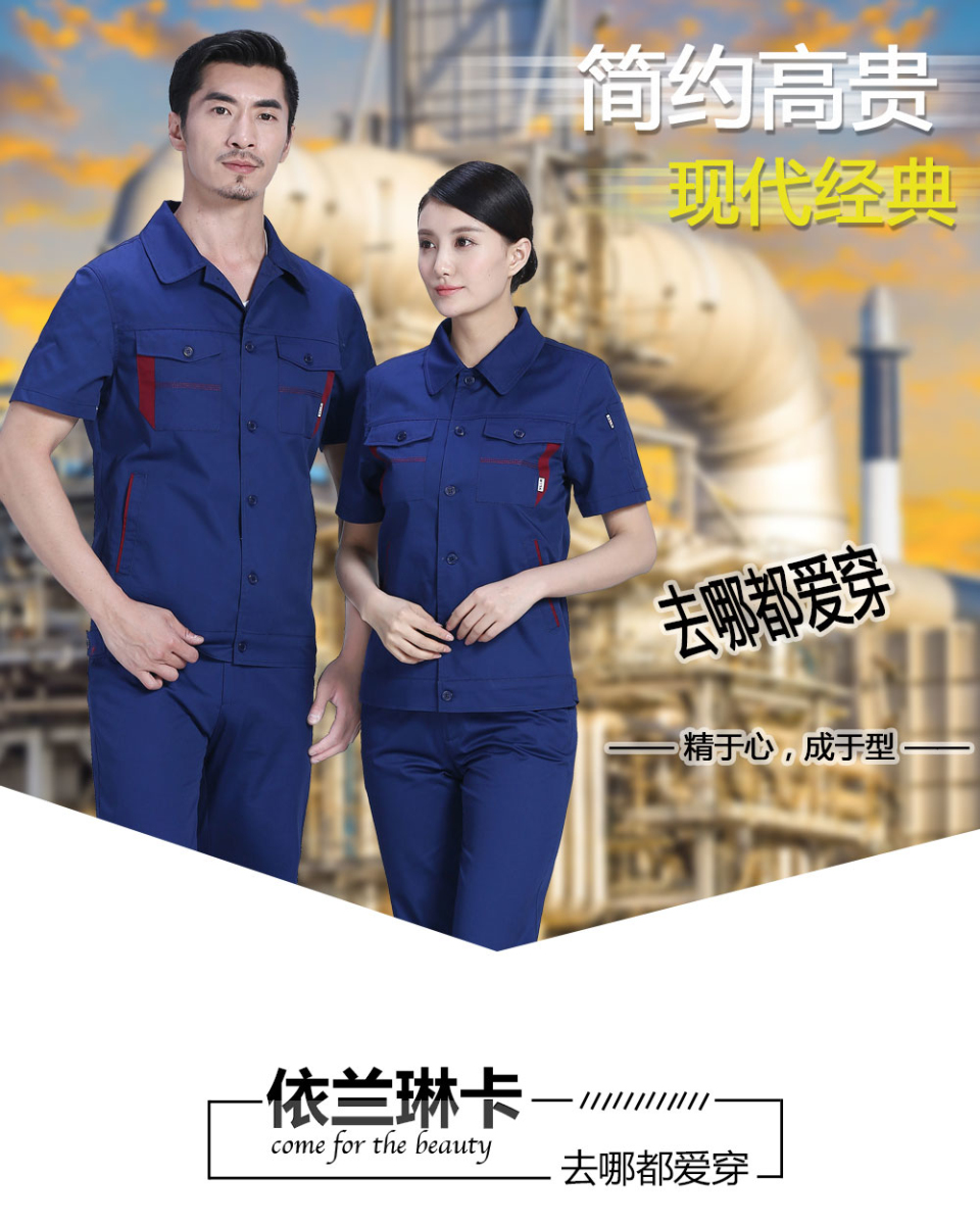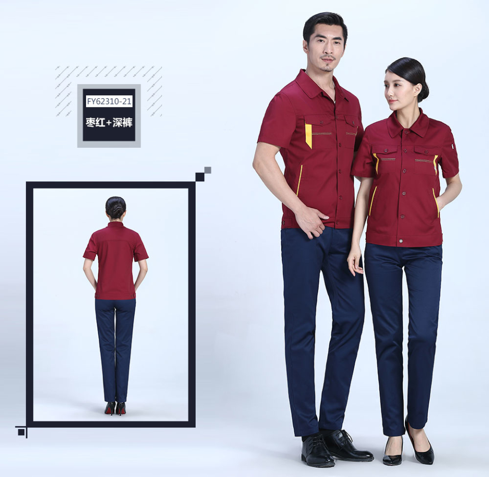 - 標簽:深藍色合體滌棉細斜短袖工作服FY623