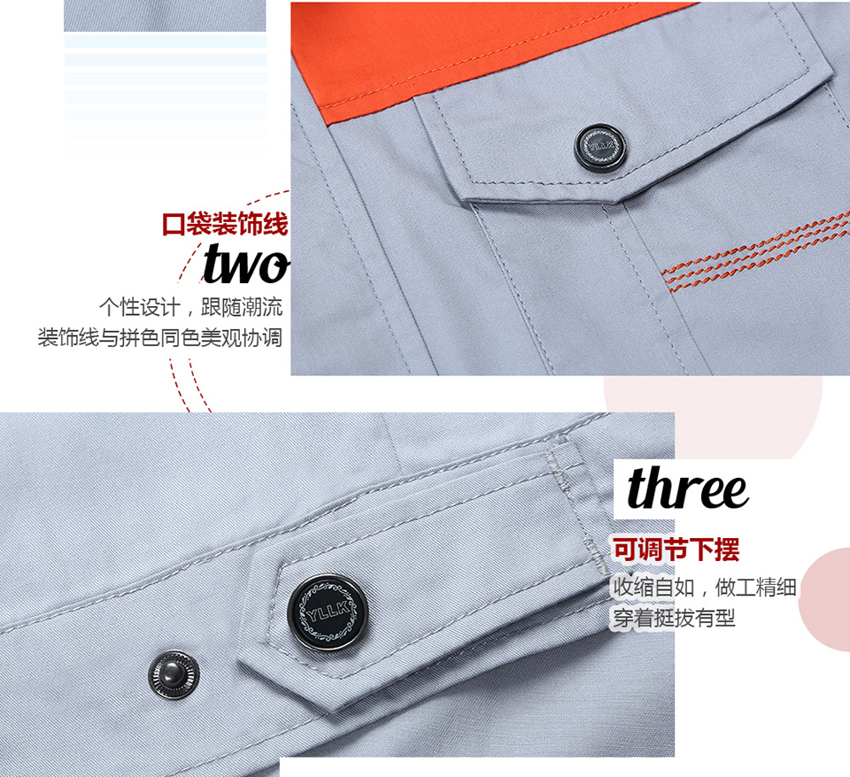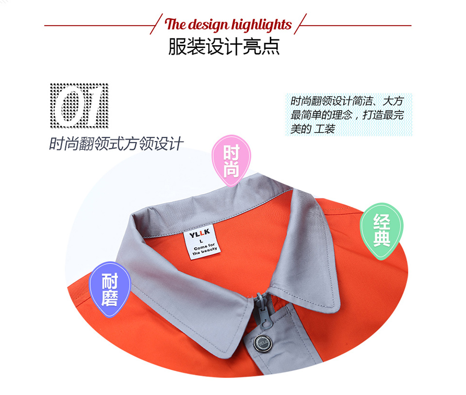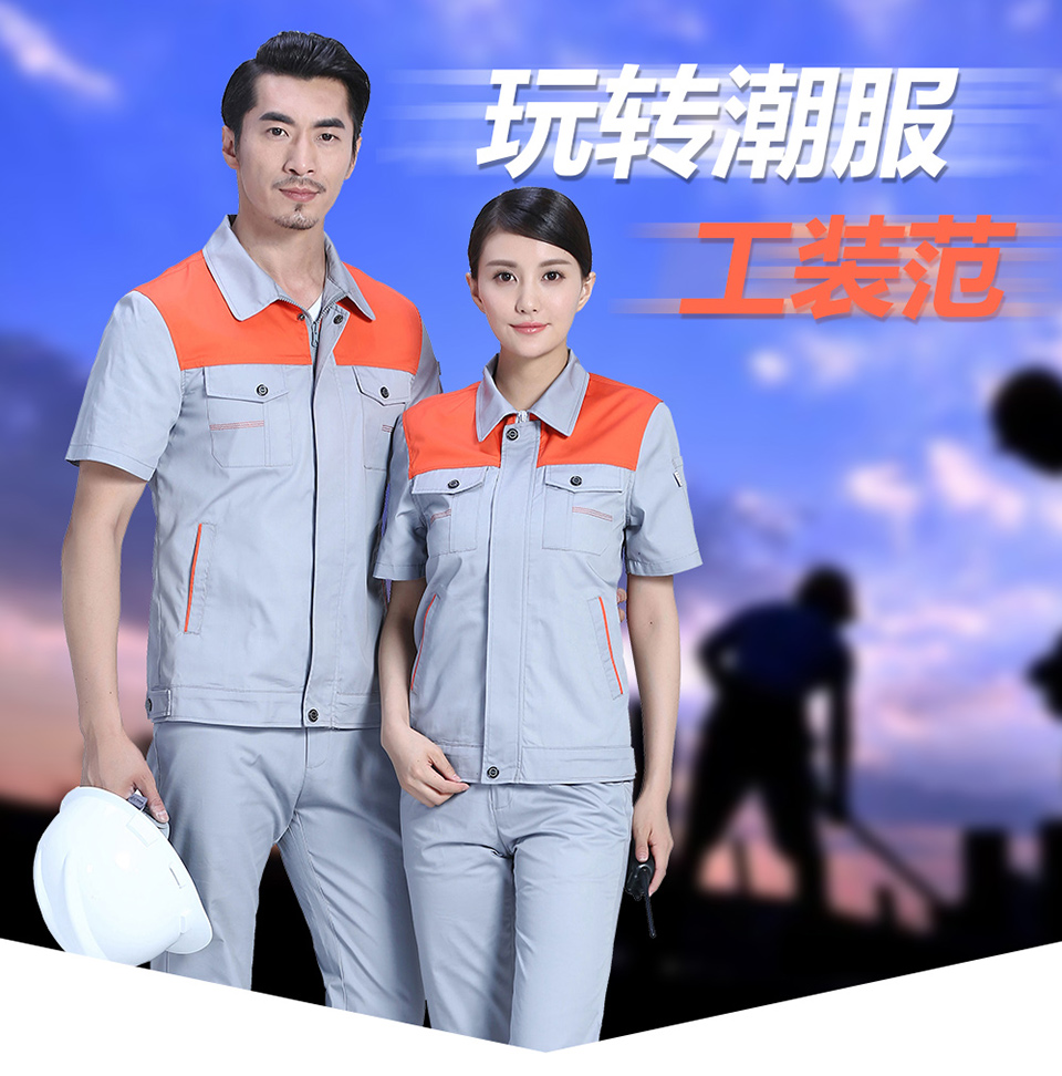 - 標簽:時尚桔色拼接滌棉細斜短袖工作服FY617